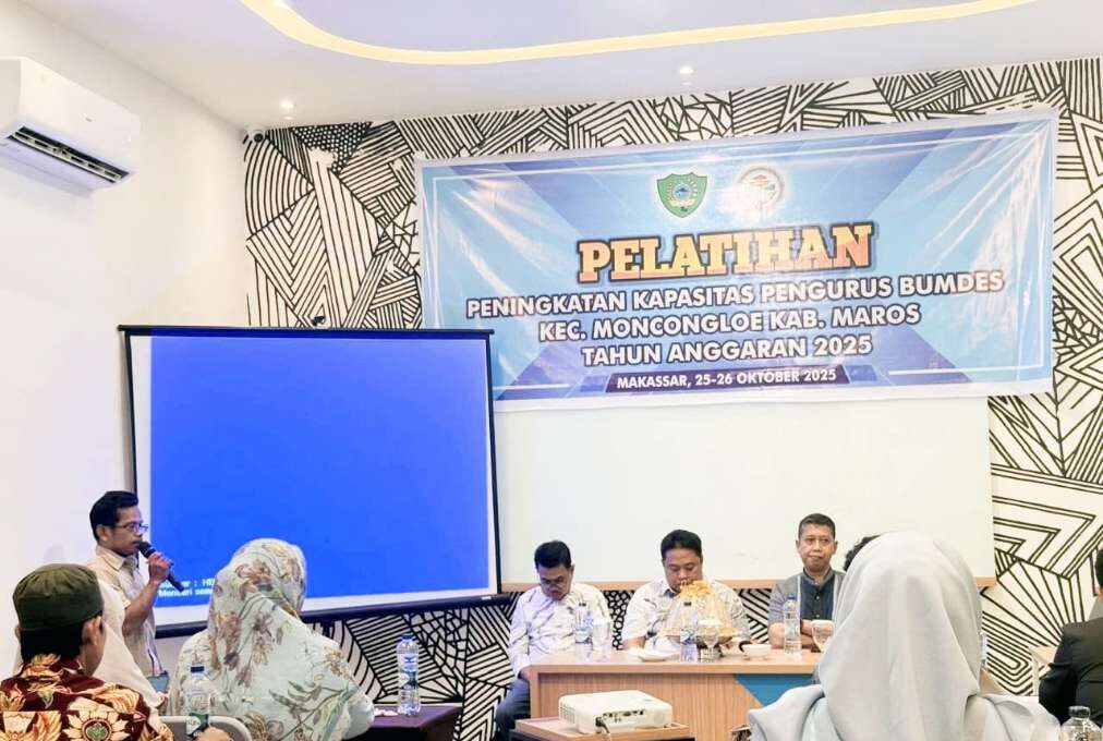 Ghazinews.com, Makassar – Pemerintah Kecamatan Moncongloe, Kabupaten Maros, menyelenggarakan Pelatihan Peningkatan Kapasitas Badan Usaha Milik Desa (BUMDes) Tahun Anggaran 2025 yang berlangsung selama dua hari, 25–26 Oktober 2025, di Makassar.