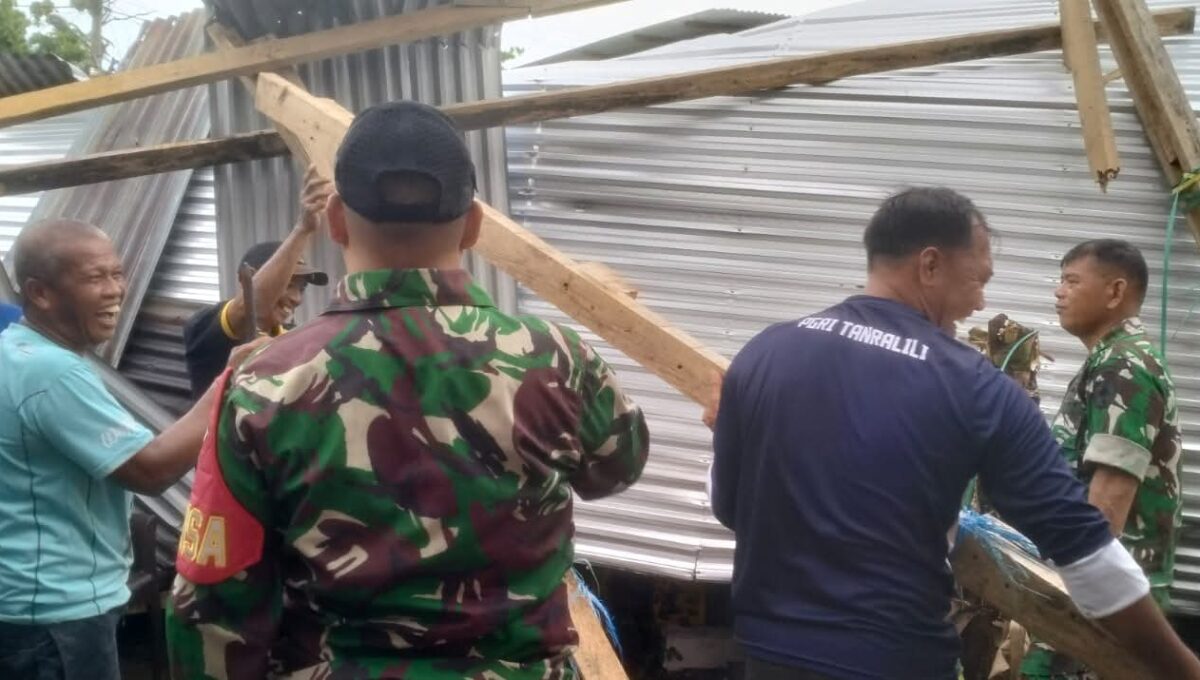 Koramil 1422-02/Bantimurung Gerak Cepat Bantu Warga Terdampak Puting Beliung di Desa Tukamasea